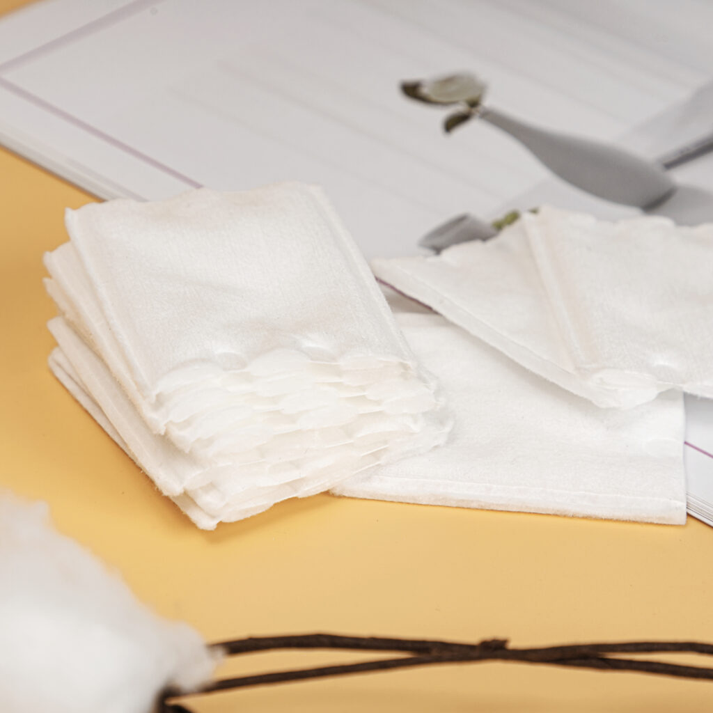 Bông tẩy trang dạng vuông Mineko có kích thước lớn hơn và được sử dụng rộng rãi trong các quy trình làm sạch sâu và tẩy trang chi tiết. Chúng có độ hút ẩm cao và giúp loại bỏ hiệu quả các lớp trang điểm dày, bụi bẩn và dầu thừa trên da.